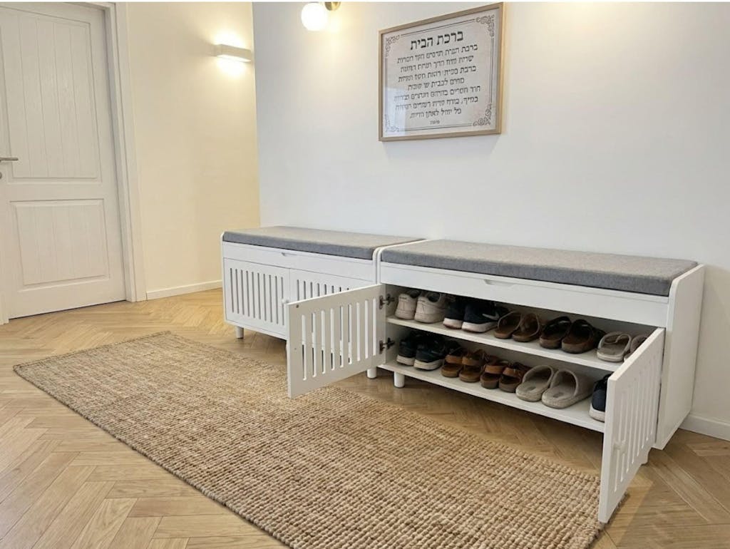 הזמנתי שניים, לכניסה משמש גם לאחסון מצעים בחדר שינה. רב תכליתי ויפה. משלוח הגיע מהר.